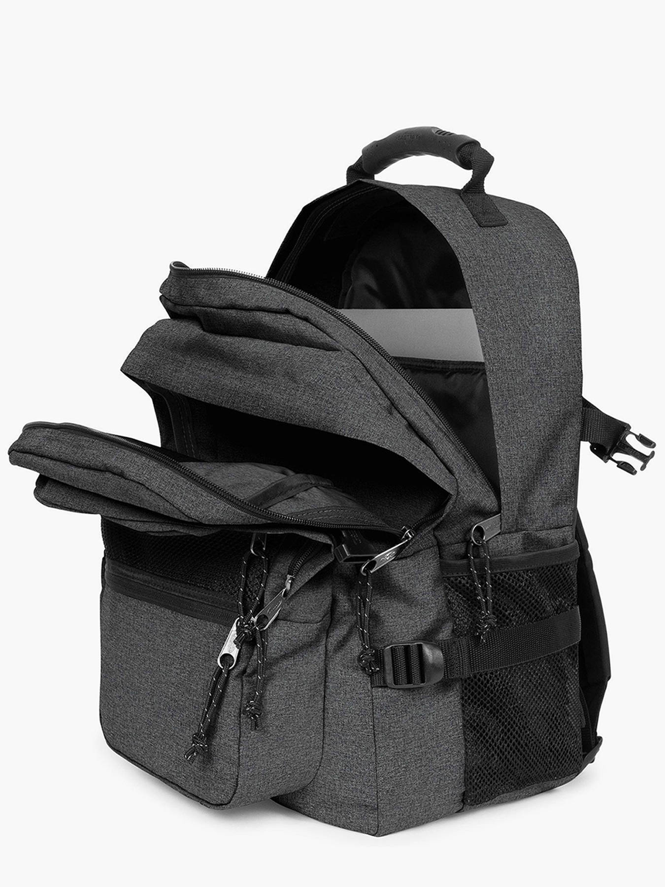 46 cm - 38 litres - 0.89 kg ~ Le sac à dos Eastpak à deux compartiments et poche pour PC 16"" est parfait pour les filles et garçons âgés de 11 à 15 ans et plus. Fabriqué en polyester résistant, il offre une durabilité exceptionnelle pour un usage quotidien. À l'extérieur, il dispose d'une poche avant, d'une poche latérale et d'une poche au dos, toutes dotées de fermetures zippées pour sécuriser vos affaires. Les bretelles réglables et la possibilité de le porter à la main ou sur le dos assurent un confort optimal. À l'intérieur, le sac comprend deux compartiments spacieux, trois poches simples et une poche zippée, idéales pour organiser vos fournitures scolaires et autres effets personnels. Il peut accueillir un ordinateur portable de 16 pouces grâce à une poche renforcée dédiée, ainsi que des dossiers A4, des cahiers et des classeurs de différentes tailles. Ce sac à dos polyvalent combine style, fonctionnalité et confort, idéal pour les élèves et étudiants actifs.