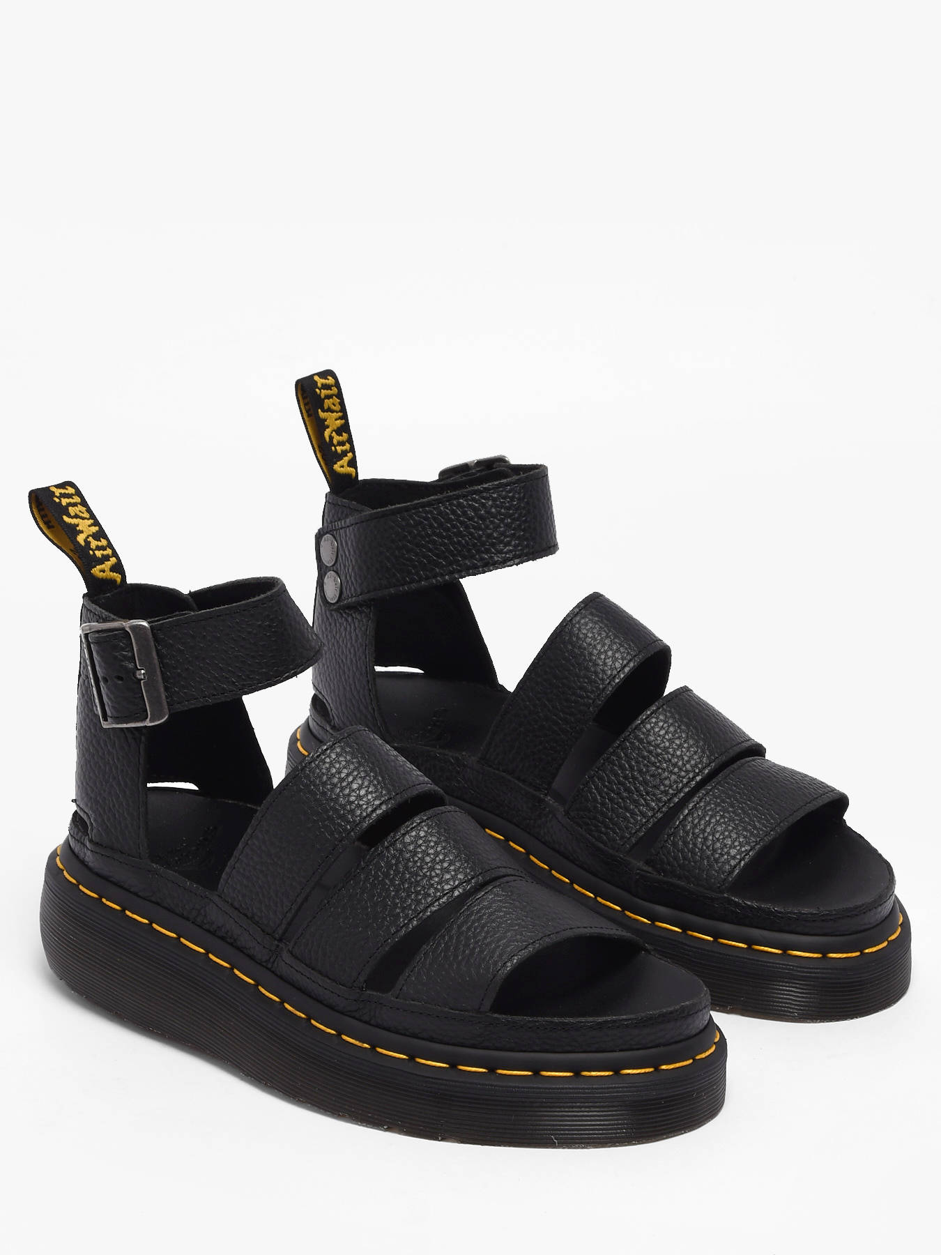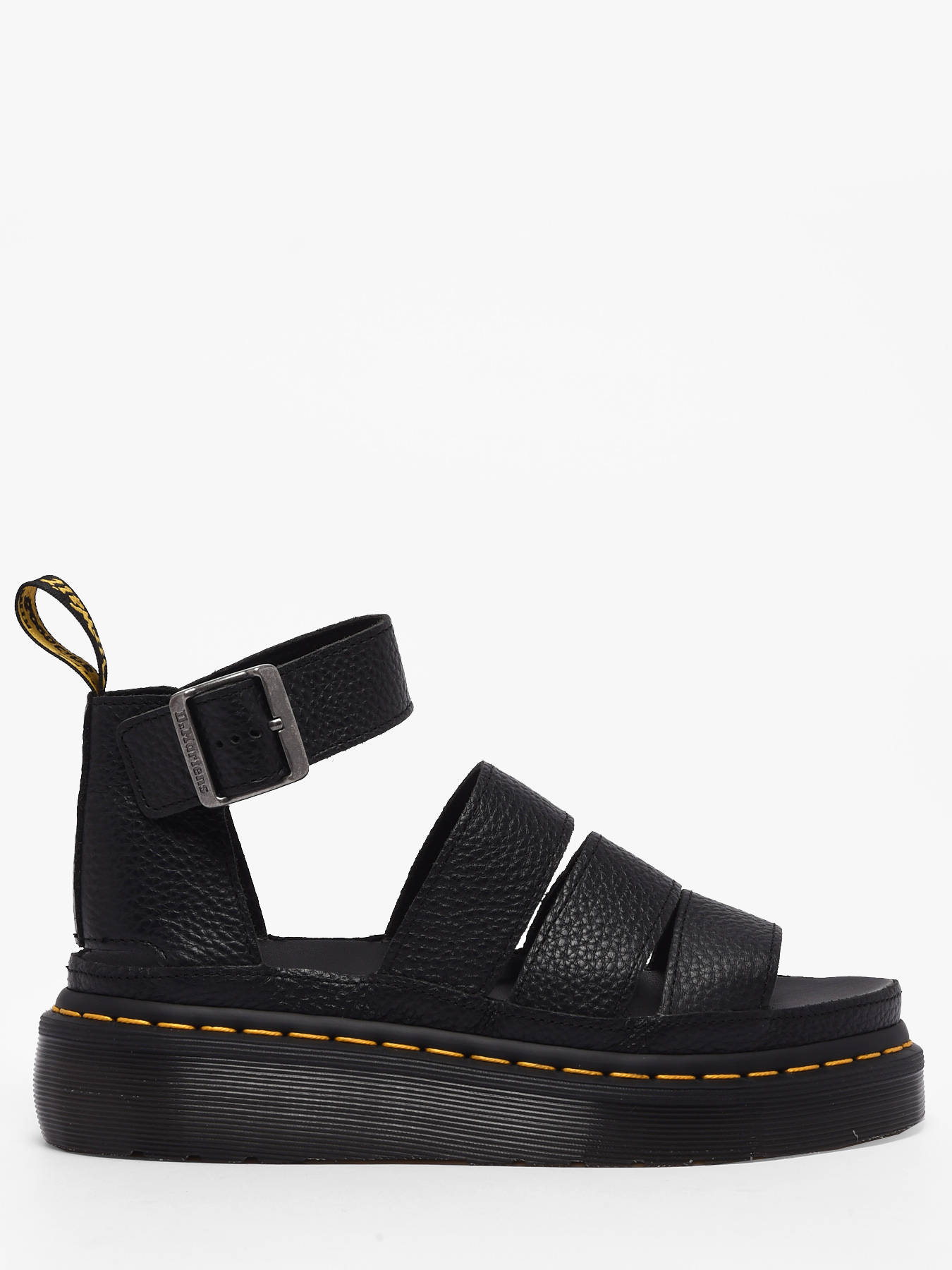 Les sandales Clarissa II Quad de Dr Martens en cuir Milled Nappa noir allient élégance et audace pour un style affirmé cet été. Leur cuir doux et souple au fini grainé sublime les quatre brides emblématiques, dont une à boucle réglable à la cheville, et révèle tout l’ADN rebelle de Dr Martens. La semelle compensée ultra-haute offre confort et démarche assurée, tandis que chaque détail, des coutures robustes à la finition soignée, affirme un look résolument moderne et tendance. Polyvalentes et irrésistibles, ces sandales spartiates deviennent la pièce incontournable pour traverser la saison avec caractère, de la ville à la plage, et afficher un style unique, affirmé et audacieux.